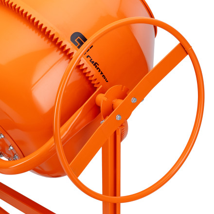 - Удобная загрузка и выгрузка смеси — барабан наклоняется при помощи маховика и легко фиксируется в нужном положении.