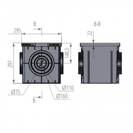 - ДОЖДЕПРИЕМНИК ПЛАСТИКОВЫЙ (ПУСТОЙ) 300*300*297 B125
