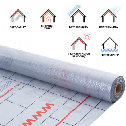 Умная двухслойная гидроизоляционная плёнка серого цвета с интегрированной клеящей лентой для защиты неутеплённых кровель с металлическим или иным покрытием, полов влажных помещений, утеплённых цокольных перекрытий, а также для пароизоляции зданий. Значительно снижает риск образования наледи и сосулек, отводя тепловой поток от кровли.