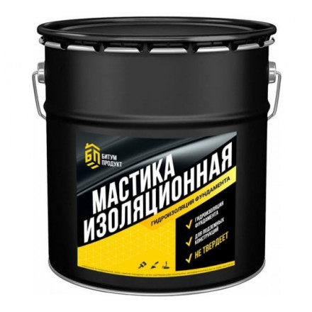 Мастика битумная изоляционная БИТУМ ПРОДУКТ 15 кг BP-003 это готовый к применению материал. Мастика полностью готова к нанесению и включает в себя все необходимые технологические добавки, наполнители и растворители. Служит отличным решением для обмазочной гидроизоляции бетонных, стальных и деревянных строительных конструкций, расположенных ниже уровня земли и имеющих прямой контакт с грунтом.