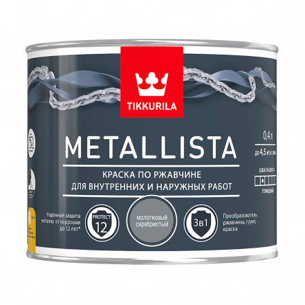 - Краска для металла по ржавчине 3в1 Metallista TIKKURILA МОЛОТКОВАЯ 0,4 л Серебристая