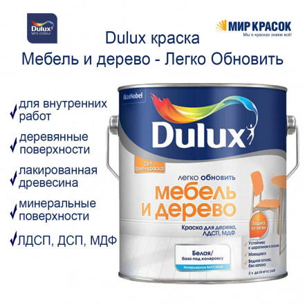 - Краска грунт для дерева DULUX ЛЕГКО ОБНОВИТЬ МЕБЕЛЬ И ДЕРЕВО, ЛДСП, МДФ, матовая, база BС 0,75л