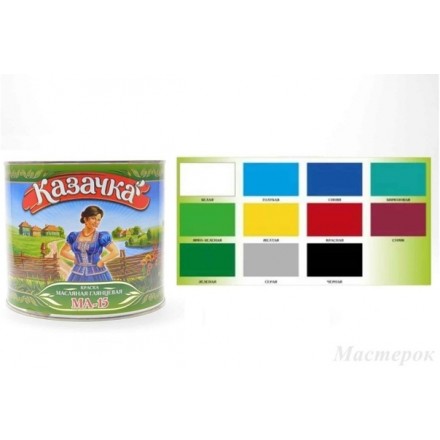 Масляная краска МА-15 Казачка используется для окрашивания деревянных и металлических изделий. В ее составе содержатся специальные добавки, которые повышают ее стойкость и позволяют использовать при выполнении внутренних и наружных работ. Содержащиеся в ее составе высококачественные олифы позволяют значительно увеличить экологические показатели материала в целом и снизить его стоимость.