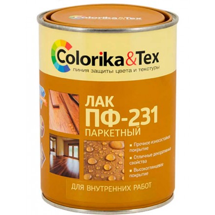 Назначение: лак ПФ-231 Colorika&Tex - это лак, который специально был разработан для покрытия паркетных полов. Также эксплуатационные характеристики позволяют его применять для финишной отделки окрашенных масляными красками, эмалями, антисептиками деревянных поверхностей внутри помещений. После высыхания не токсичен и не оказывает вредного воздействия на организм человека.