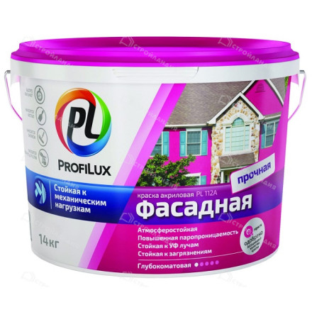 - Краска фасадная влагостойкая, белая PL 112А ПРОФИЛЮКС 14кг