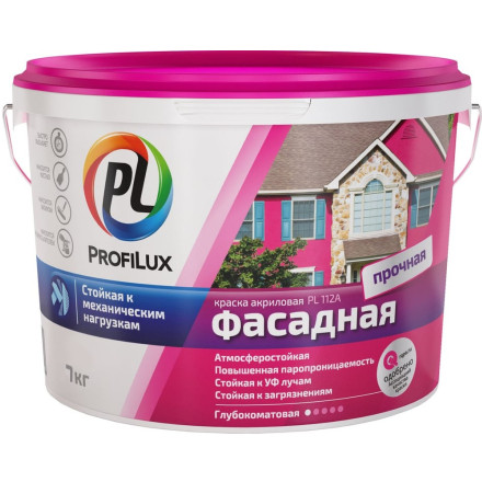 - Краска фасадная влагостойкая, белая PL 112А ПРОФИЛЮКС 7кг
