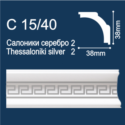 Плинтус потолочный экструд.Солид С15/40 с печ.Салоники-2/серебро 39*39мм*2м