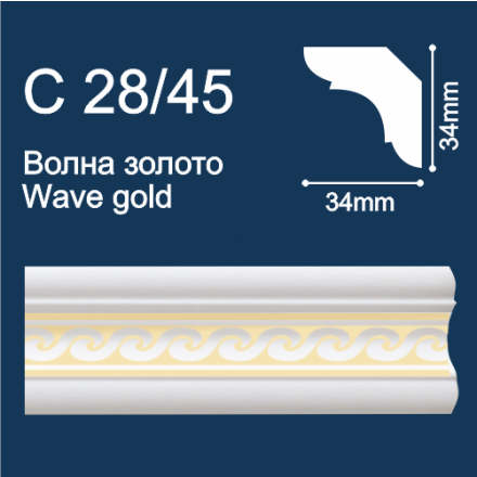 Плинтус потолочный экструд. Солид С28/45 с печ. Волна/золото 30х30ммх2м