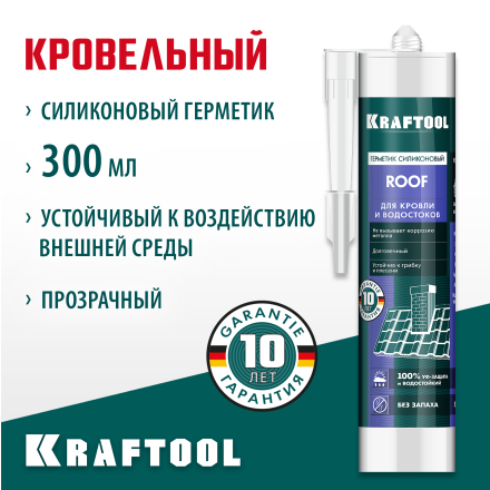 - Герметик силиконовый кровельный Kraftool Roof прозрачный 300 мл