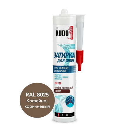 - Герметик-затирка для швов KUDO HOME силиконовый санитарный кофейно-коричневый RAL 8025 280мл KSK-166