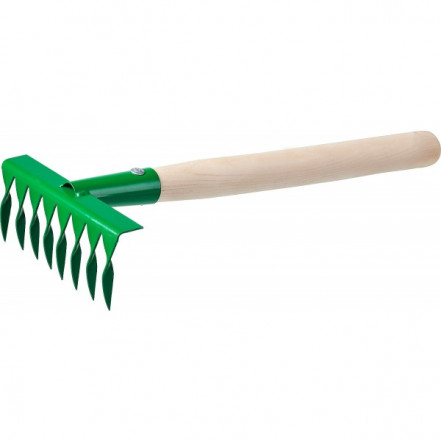 Грабельки садовые с деревянной ручкой, РОСТОК 39613, 8 витых зубцов, 160x62x405 мм 39613