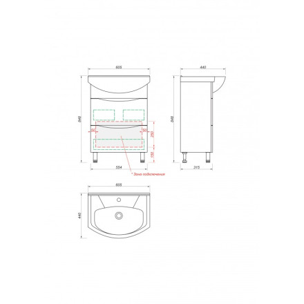 - Тумба напольная "МИШЕЛЬ - 60" с 2-я ящиками ( под умывальник Элеганс 60)