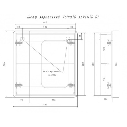 Оснащение зеркала: крепления, 1 внутренняя стеклянная полка
