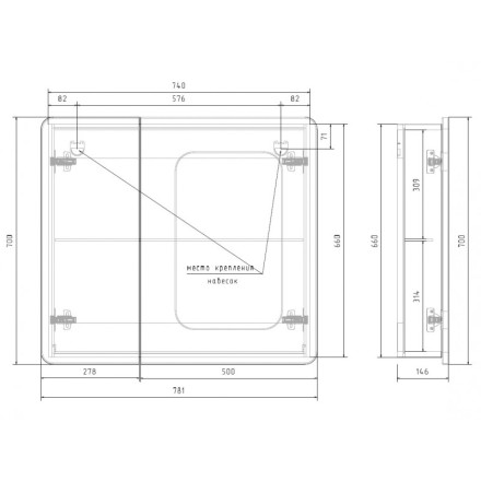 Оснащение зеркала: крепления, 1 внутренняя стеклянная полка