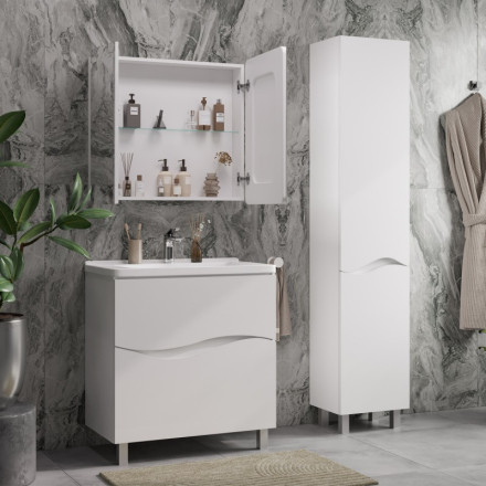 По умолчанию шкаф зеркальный собран с открыванием дверки налево.