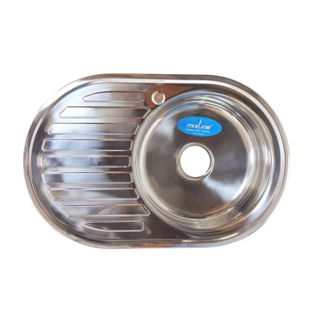 - Мойка нержавейка MIXLINE овал 77х50 правая, выпуск 3 1/2 толщ. 0,6 с сифоном
