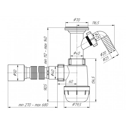 Сифоны – широкий ассортимент Сифон Ани Грот 1 1/2"* 40 с отводом под стир.машину с г/тр. 40х50 А2010 – купить с доставкой
