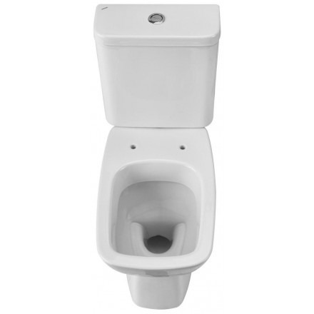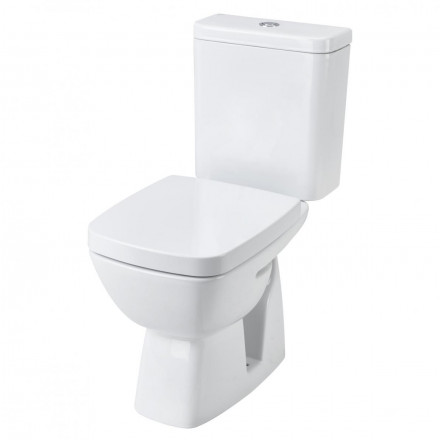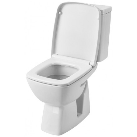 Унитаз со сливным бачком, двухрежимная сливная арматура, наклонный выпуск, нижняя подводка воды, быстросъемное сиденье из дюропласта (с антибактериальным покрытием) с механизмом плавного опускания.