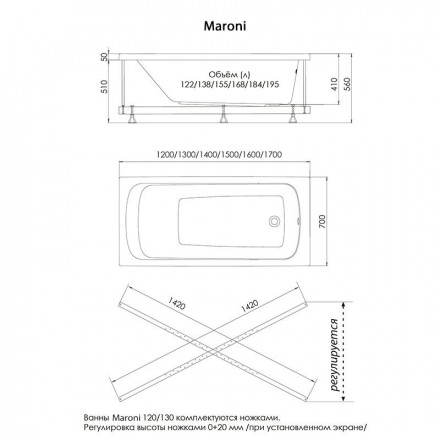 2. Каркас для акриловых ванн MARONI 140/150/160/170 см либо Ножки для акриловых ванн MARONI 120/130/140/150/160/170/180x70 см