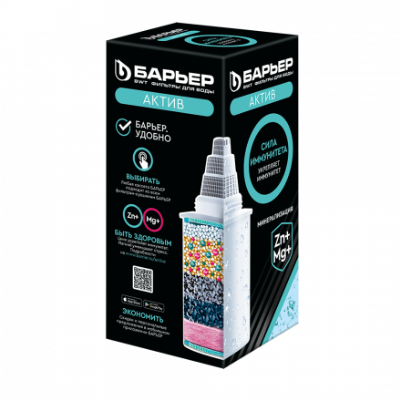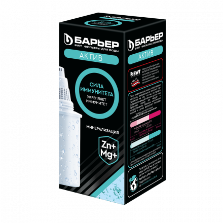 БАРЬЕР Актив Сила Иммунитета обогащает магнием и цинком, базовая очистка и обогащение воды магнием и цинком - важными "строительными элементами" иммунной системы. Улучшенная формула обогащения цинком по сравнению с другими кассетами БАРЬЕР.